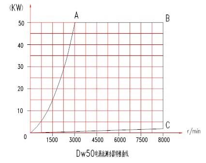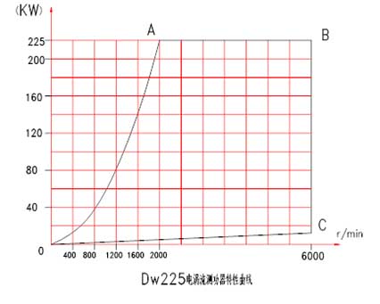 2.特性曲線 DW系列電渦流測功機特性曲線表示測功機在不同轉速下所能吸收的功率范圍,它由OABC組成。 OA—最大扭矩線。當最大扭矩為常數時所能吸收的最大功率,隨著轉速的增加而上升,在A點達到扭矩強度所允許的最大功率。 AB—最大功率線。測功機達到最大扭矩點(A)后,隨著轉速的變化測功機所允許吸收的最大功率。 BC—最高轉速線。測功機在工作時允許的最高轉速。 上述三段限線所包圍的區域為測功機的工作范圍。凡動力機或其它機械設備的動力特性在OABC所包圍的范圍內者,均能用該型測功機進行特性試驗,用戶在選用測功機時須稍留有余地。但余地太大,測試精度則難以保證。 或由OABCD組成,則AB線為主軸強度所容許的最大扭矩值,其余BC、CD線含意同上。 ![]() ![]() ![]() ![]() ![]() 三 產品的主要結構 電渦流測功機分感應子式、盤式兩種,主要由旋轉部件(感應轉子)、擺動部件(電樞和勵磁線圈)、測力部件(測力臂加應變片式拉壓力傳感器)和校正部件(校正臂加砝碼)組成,其結構簡圖如圖一、圖二(測力部件、校正部件未畫)。 ![]() 圖一:盤式電渦流測功機 ![]() 圖二:鼓式電渦流測功機